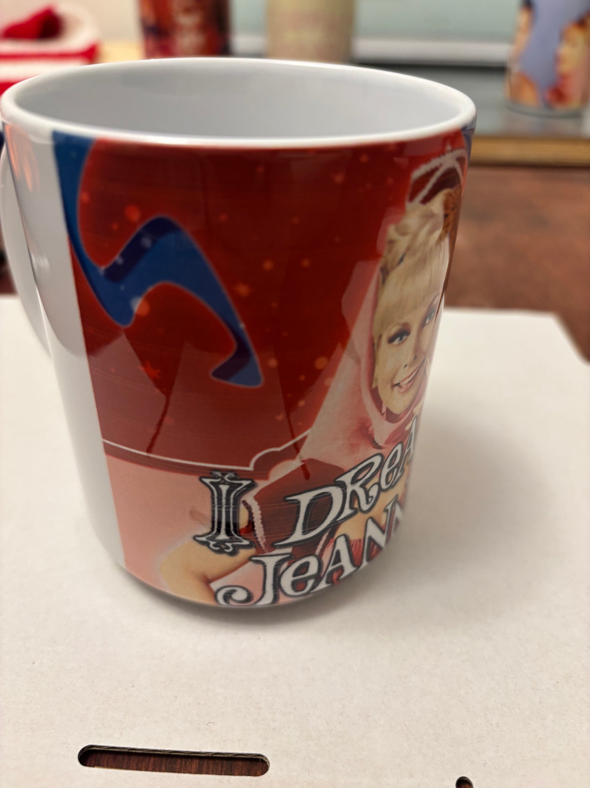 Introducing the new 12 ounce Jeannie Mug, featuring a classic design inspired by the iconic show "I Dream of Jeannie". Crafted with high-quality materials and a spacious capacity, this mug is perfect for sipping your favorite beverage while also making a statement. Add a touch of nostalgia to your morning routine.